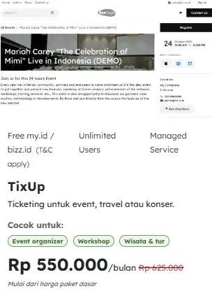 MyEdu Demo adalah bagian dari TixUp untuk skenario kelas online & kursus. Menampilkan katalog kelas, jadwal, pendaftaran, pembayaran, hingga e‑ticket/e‑certificate.